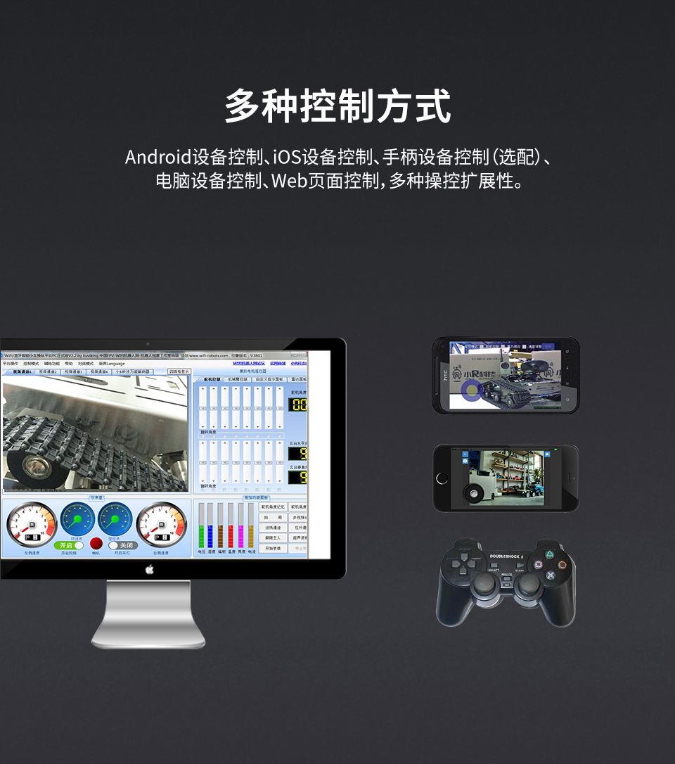 小R科技WiFi視頻小車機(jī)器人安卓控制軟件APP 本APP適用于小R科技所有常規(guī)的WiFi視頻小車機(jī)器人產(chǎn)品,如DS/GFS/TH/平衡車/麥克納姆輪車/X系列 等車型,具備馬達(dá)、舵機(jī)控制,視頻顯示,重力感應(yīng)VR等功能