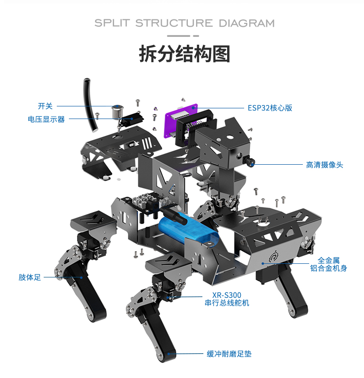 XR Hexapod R1 樹莓派AI六足仿生機(jī)器人